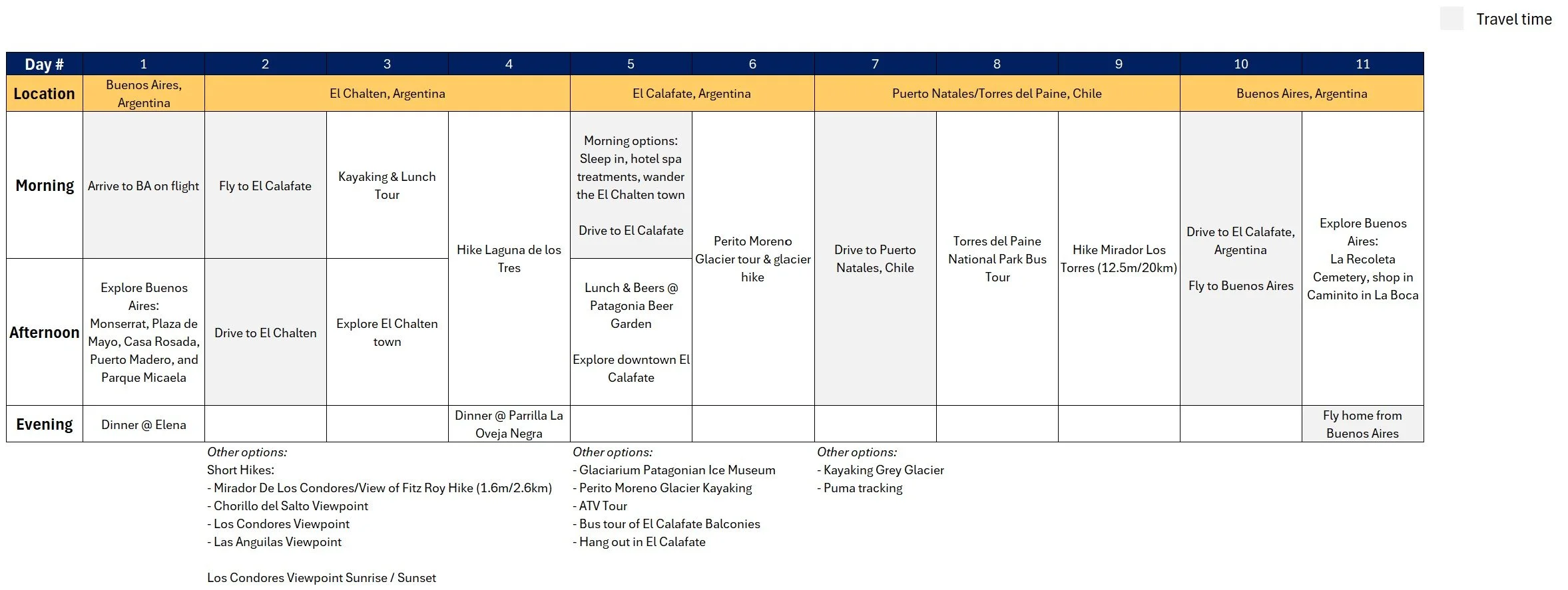 In December 2023, I embarked on an unforgettable 11-day adventure through the wild beauty of Patagonia with a group of friends. From the vibrant streets of Buenos Aires to the breathtaking glaciers and rugged landscapes of Argentina and Chile, every moment felt like discovering something new. In this post, I’m sharing the highlights of our trip—from stunning hikes to intimate moments on the water. I hope it inspires your own journey to find awe in this magical corner of the world.